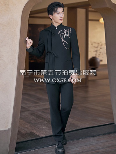 10B1036黑色国风新中式西装兰花刺绣中山装