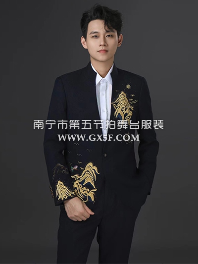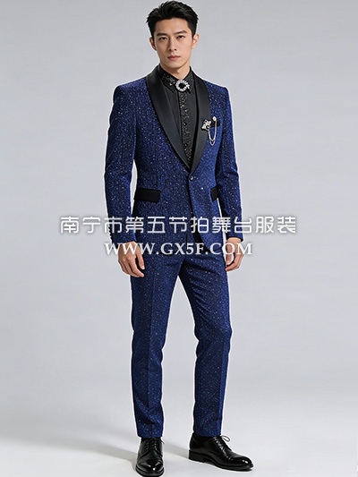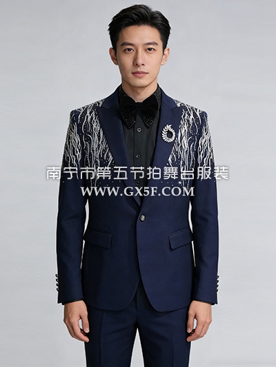 10B1040藏蓝色西装银色刺绣线条主持人歌手