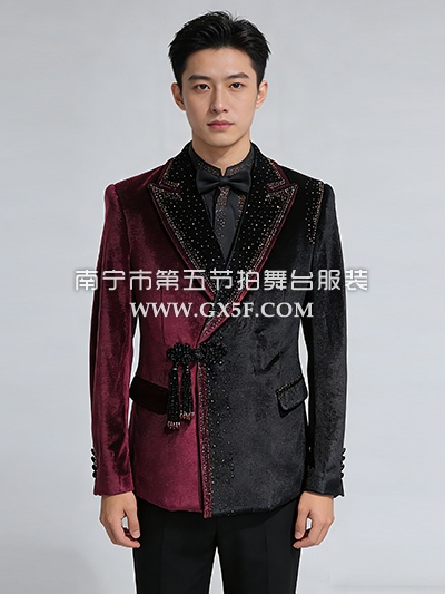 10B1042红黑丝绒烫钻主持人歌手男礼服