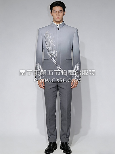10B1044灰色渐变烫钻麦穗中山装唐装新中式