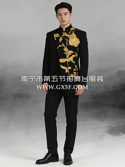 10B1018黑钻玫瑰黑色套装主持人歌手男礼服
