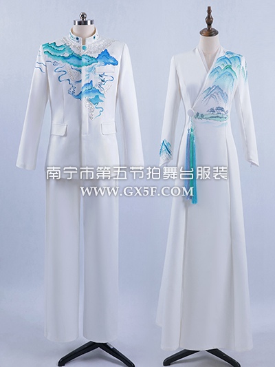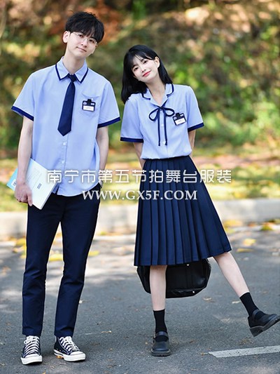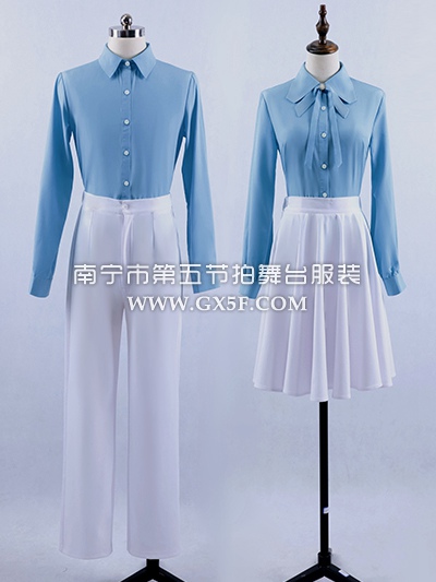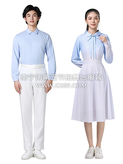 02G1649/02B1652(单套价)女蓝衣白裙/男蓝衣