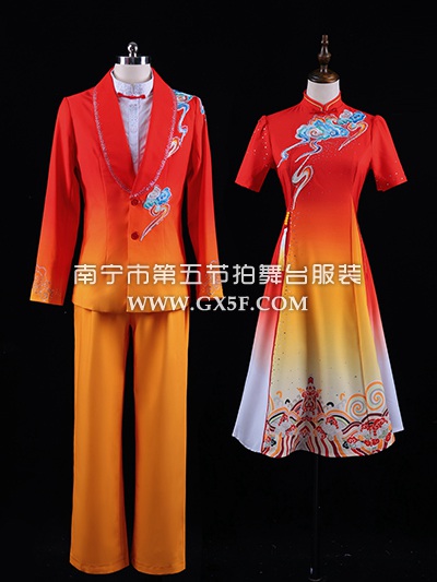 04G101+10B969组合价-红色渐变立领短袖合唱