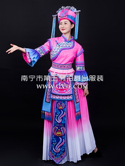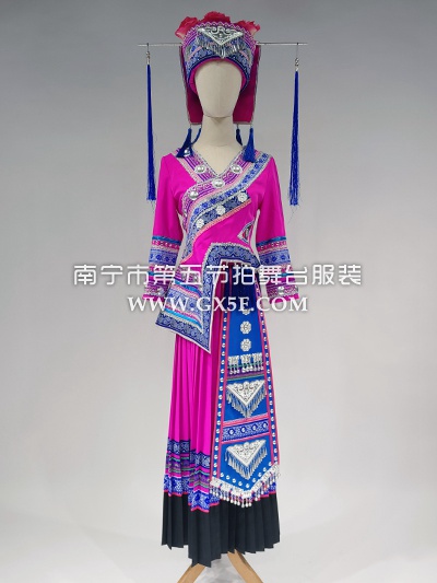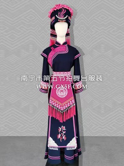 01G764女玫红边藏蓝长袖长裙仫佬族盛装