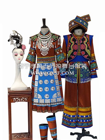 01B487男黄蓝长袖长裤壮族苗族瑶族侗族少