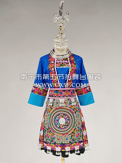 01G146女紫色渐变喇叭袖肉色肩短裙苗族瑶
