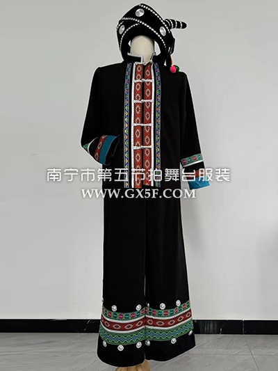 01B481男蓝黑假两件上衣裤装壮族苗瑶侗少