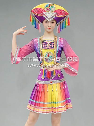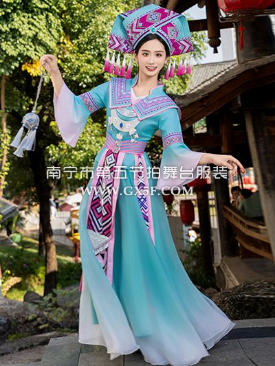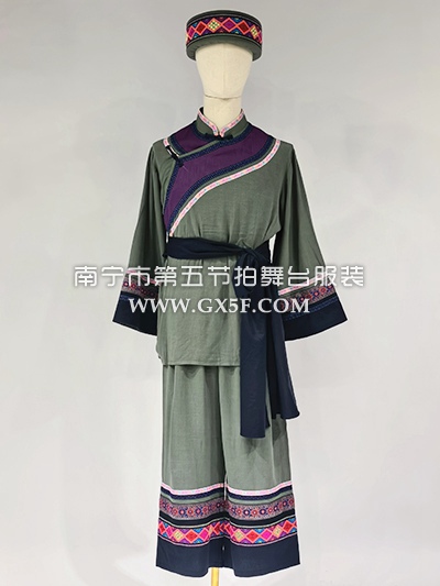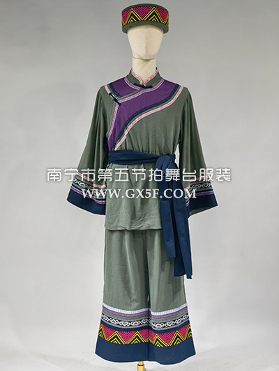 01B966男蓝衣绿袖蓝裤橙边壮族少数民族群