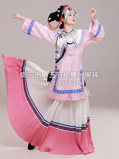 01G861女粉色短袖连衣裙苗瑶彝族少数民族
