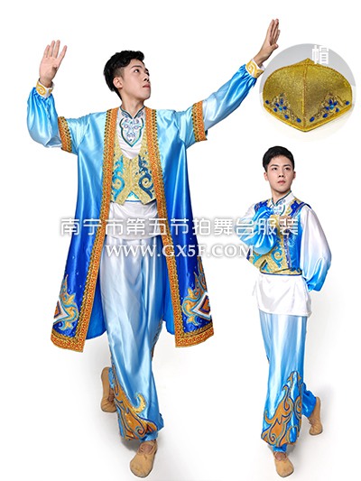 01B811男蓝白新疆维吾尔族哈萨克斯少数民