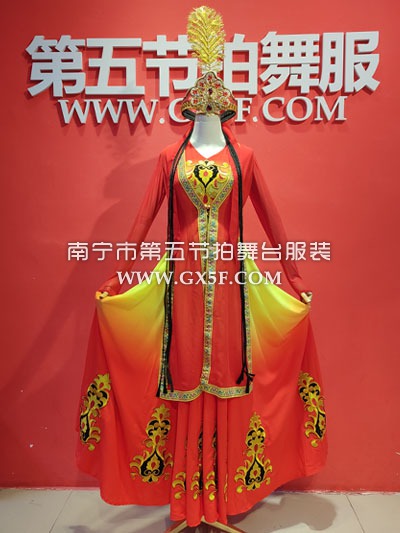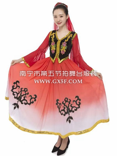 01G855女红橙渐变长袖连衣裙新疆维吾尔族