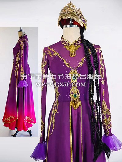 01G922女黑紫长袖连衣裙新疆维吾尔族