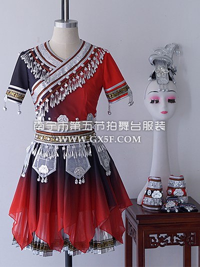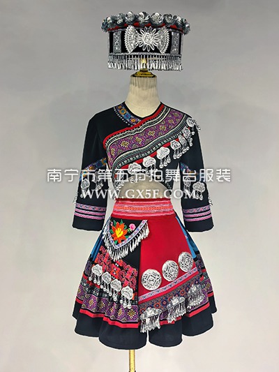01G878女红黑短袖短裙苗族多民族少数民族