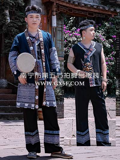 01B906男黑马甲黑裤藏青外褂苗族旅拍