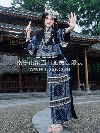 01G911女蓝黑长袖长裙苗族土家族少数民族