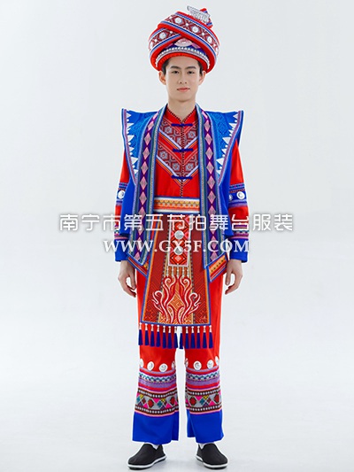 01B921男红蓝衣裤马甲多民族少数民族盛装