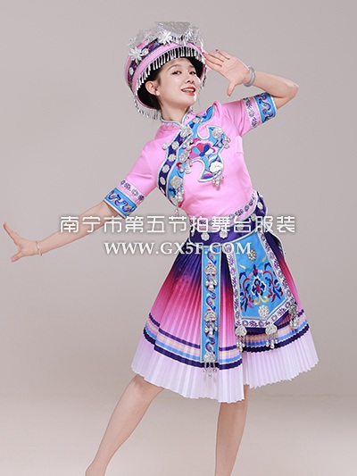 01G936女粉紫短袖短裙百褶裙布依族苗族土