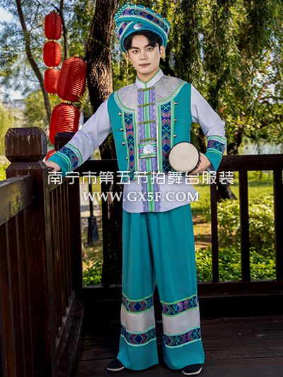 01B984男白衣青色马甲长裤壮族