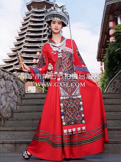 01G917女红色长袖长裙苗疆公主苗族盛装旅