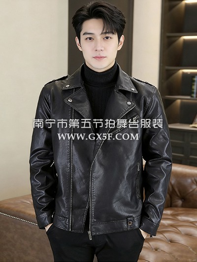 • 10B1045黑色皮衣痞帅男装翻领机车皮衣上衣