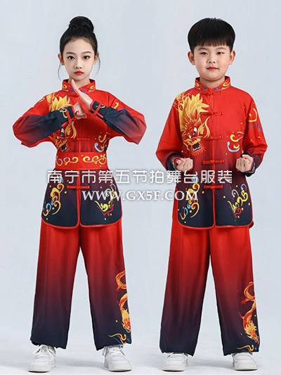 12G1837儿童男女红黑衣裤武术服舞龙舞狮服