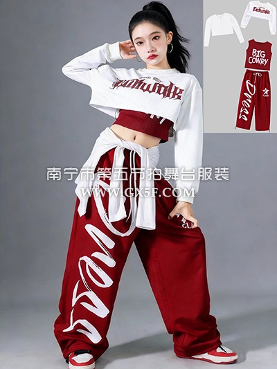 12G1847儿童女枣红衣裤白罩衫儿童街舞儿童