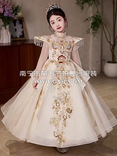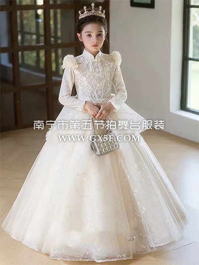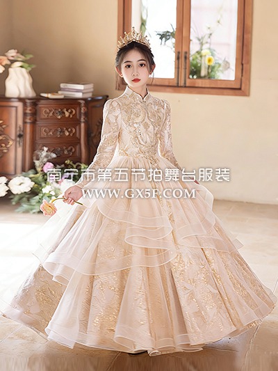 12G1831儿童女香槟色长袖立领长礼服公主裙