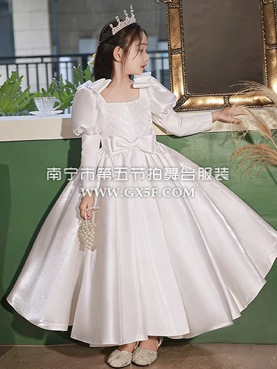 12G1829儿童女白色亮面长袖长礼服
