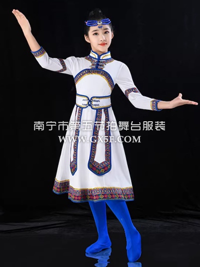 12G1843儿童女白色中长袖连衣裙蒙古族筷子