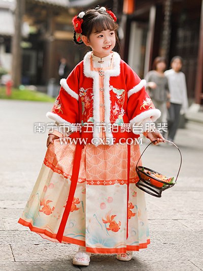12G1841儿童女红色莲莲有鱼冬装拜年服马面