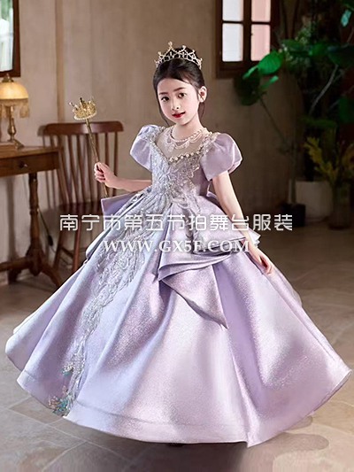 12G1844儿童女紫色短袖长礼服公主裙