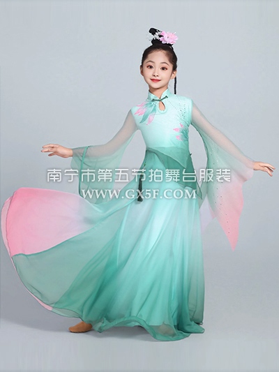 12G1842儿童女绿色渐变连衣裙古典舞烟雨江