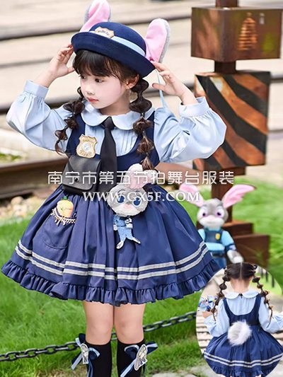 12G1846儿童女蓝色连衣裙朱迪兔子警官疯狂