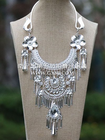 14G4347银色花朵孔雀苗族银项圈