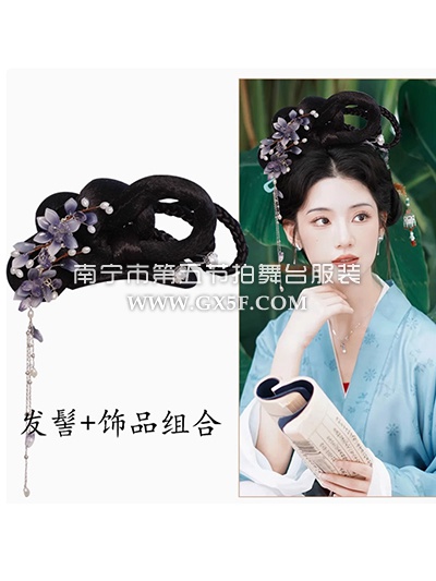 14G4366蓝紫花发饰发髻明制唐风古风汉服头