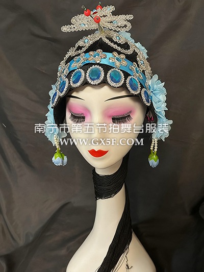 14G4381蓝色戏剧京剧戏曲青衣花旦头饰