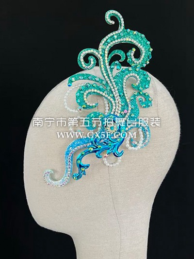 14G4383蓝色贴钻串珠大摆裙开场舞头饰伴舞