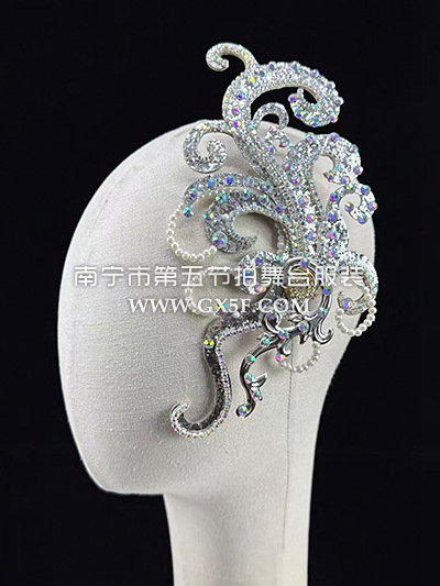 14G4384银色贴钻串珠大摆裙开场舞头饰伴舞