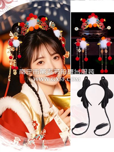 14G4386新年头饰假发发箍发冠发钗元宝铜钱