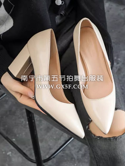 14G5166米白色尖头细跟高跟鞋