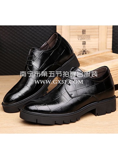 14B5176黑色格纹隐藏内增高皮鞋
