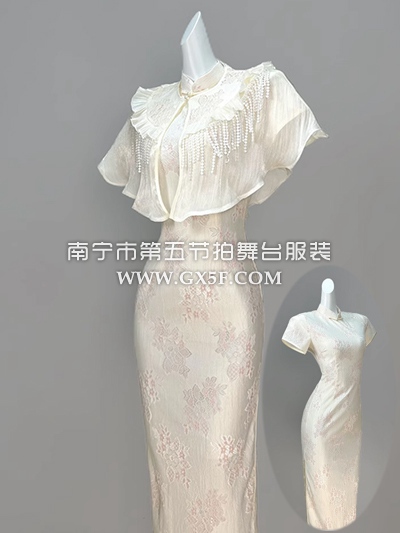 07G439粉色蕾丝短袖杏色云肩小个子中长旗