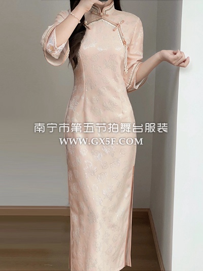 07G453粉橙色中袖长旗袍