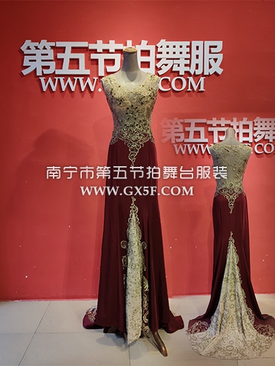 03G729半透视金边网纱红色裙摆拖尾长礼服