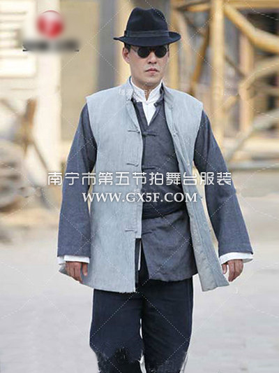 08B1089蓝色海浪纹民国长衫长袍相声袍
