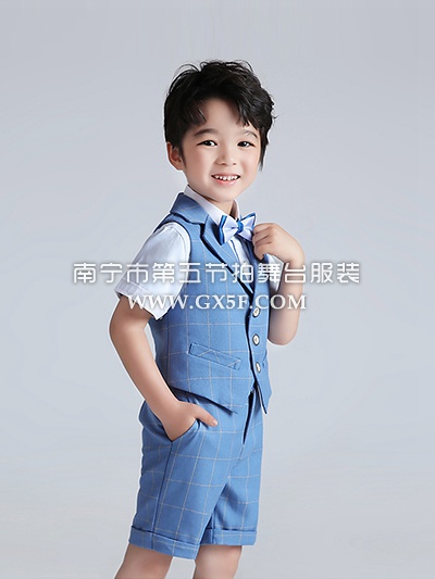 12B1164儿童男浅蓝马甲短裤白衬衫领结四件