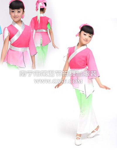 12G237女粉白渐变衣绿裤古装书童三字经朗