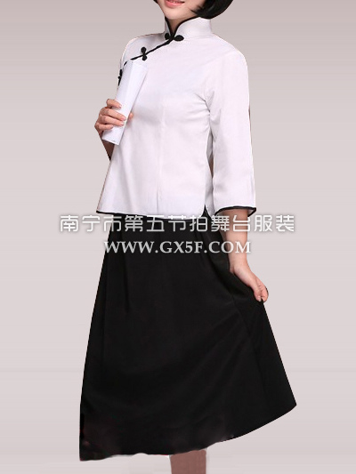 08G947女蓝衣黑中长裙亚麻五四青年民国学