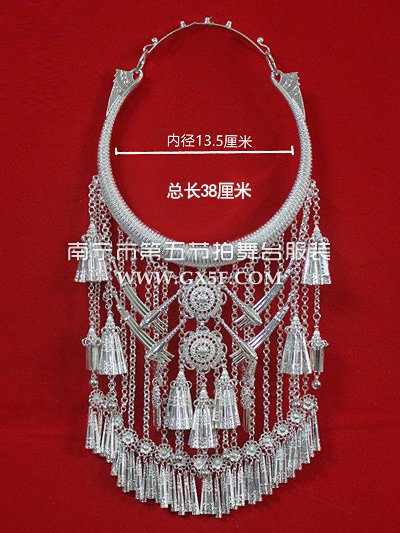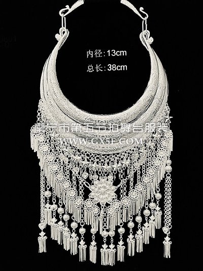 14G4347银色花朵孔雀苗族银项圈