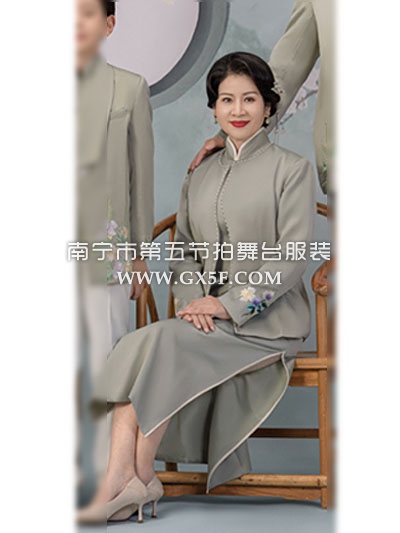 07G374灰绿色长袖外套短袖长旗袍民国风中
